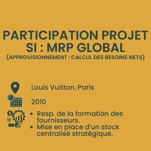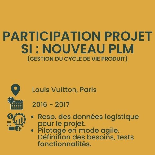 Au cours de mon expérience salariée, j’ai pu mener des projets diversifiés. J’ai notamment été en charge de projets logistiques pour Louis Vuitton, je suis intervenue chez un sous traitant et une usine au Portugal comme consultante. Chez Créaline, j’ai pu structurer l’ensemble de la supply chain de l’entreprise en passant par les outils excel et le process S&OP avec le comité de direction.